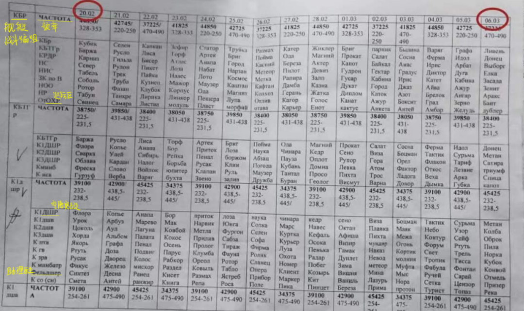 被JFO援引“俄军原计划在3月6日前实现对乌克兰的占领”的证据图片,实质上是舰艇战斗编组的无线电呼号及操作频率排表。