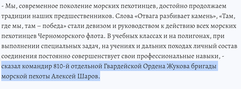sevastopol.kp报道显示俄罗斯第810独立海军陆战旅的现任指挥官名叫阿列克谢·沙罗夫。