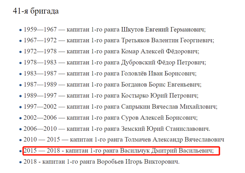 瓦西里丘克曾在2015-2018年间担任黑海舰队第41导弹舰艇旅的指挥官。