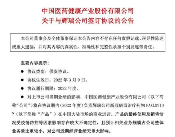 尽管目前无法获悉双方协议的具体内容,但中国医药公告明确指出,产品的最终使用及销售情况受疫情防控等因素影响存在较大不确定性,且预计相关业务规模占公司整体业务量比重较小。