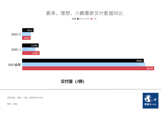 今年以来,蔚来汽车的交付量已连续两个月跌出前三。尤其是在同比增速上,较同行相差甚远,蔚来2月交付量同比仅增加9.9%,理想和小鹏汽车的同比增长率均超过250%。