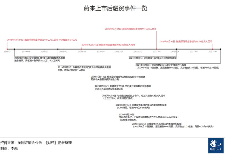 根据招股书,2018年、2019年、2020年及截至2021年9月30日的九个月里,蔚来分别产生净亏损人民币96.39亿元、112.96亿元、53.04亿元及18.74亿元。此外,尽管蔚来在2020年和截至2021年9月30日的九个月产生了正经营现金流,但是在2018年和2019年的经营活动现金流分别为负79.12亿元和87.22亿元,并且在2021年二季度和三季度的经营现金流为负。