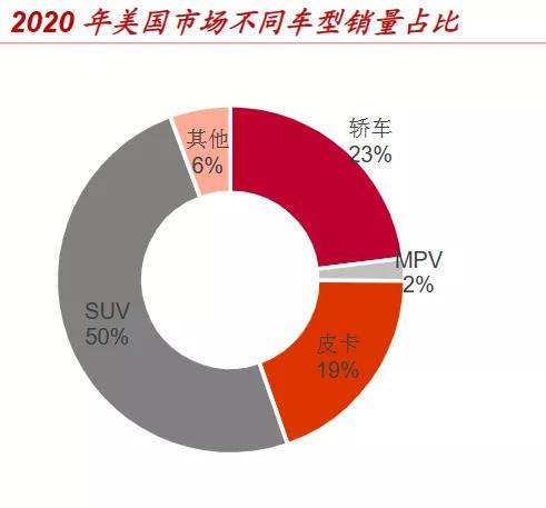 为何这样说呢?毫无疑问,当初 Rivian 之所以被市场看好,是因为它所推出的 SUV 车型 R1S 与电动皮卡 R1T 很贴合美国市场的需求。数据显示,美国市场 SUV 占比高达 50%,皮卡占比达 19%,其中,皮卡年销量约 293 万辆。