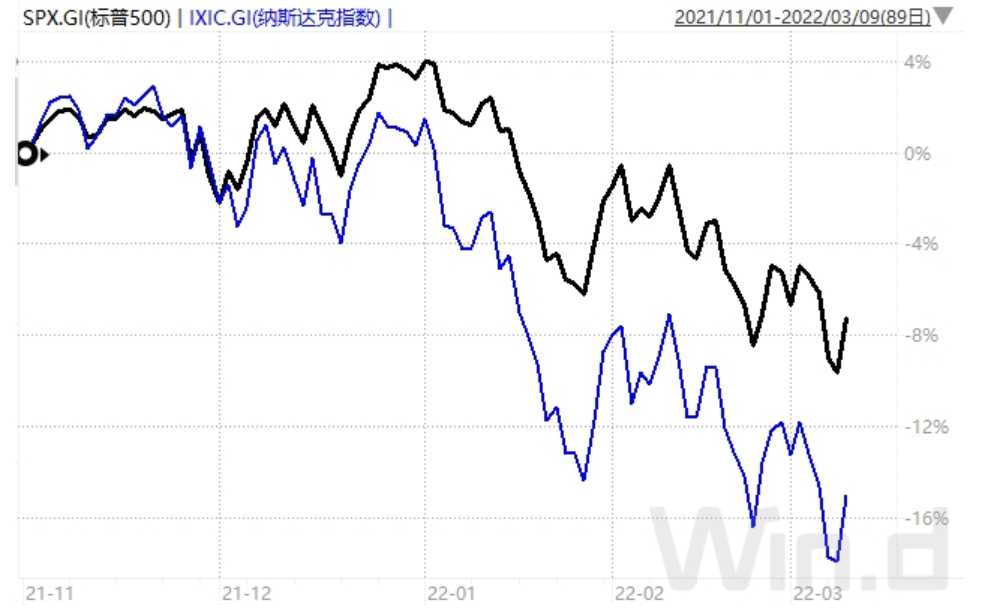 由于美联储即将开启紧缩周期以及俄乌冲突造成金融市场动荡,美股标普500指数目前已较1月初创下的纪录高位下跌超过10%,进入所谓的修正区域。