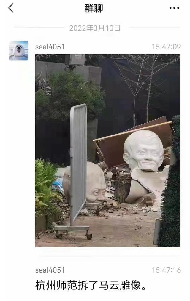 近日,网传消息“杭州师范拆了马云的雕像”,同时还配图一张马云头像雕塑。