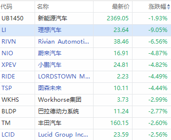 新能源汽车股跌幅扩大,理想跌超9%,Rivian跌超6%,蔚来、小鹏跌超4%,Lucid跌超2%。