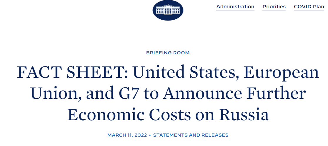 以美国为例,根据白宫发布的公告显示,政府将与国会合作取消俄罗斯的“最惠国待遇”,美国将这其称为“永久正常贸易关系”。简单来说,这是WTO体系中最重要的对等互惠方式,此举意味着俄罗斯向美国出口的商品将面临与古巴、朝鲜同等的更高税率。