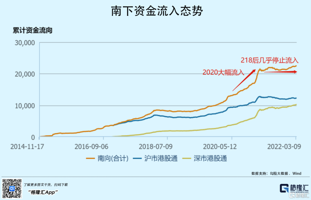 增量资金端,南下偃旗息鼓。218崩盘以来(1年多时间),南下资金区区流入1000多亿港元,对于港股大盘杯水车薪。而2020年3月至2021年2月,南下资金在不足1年内大幅流入超过1万亿元。