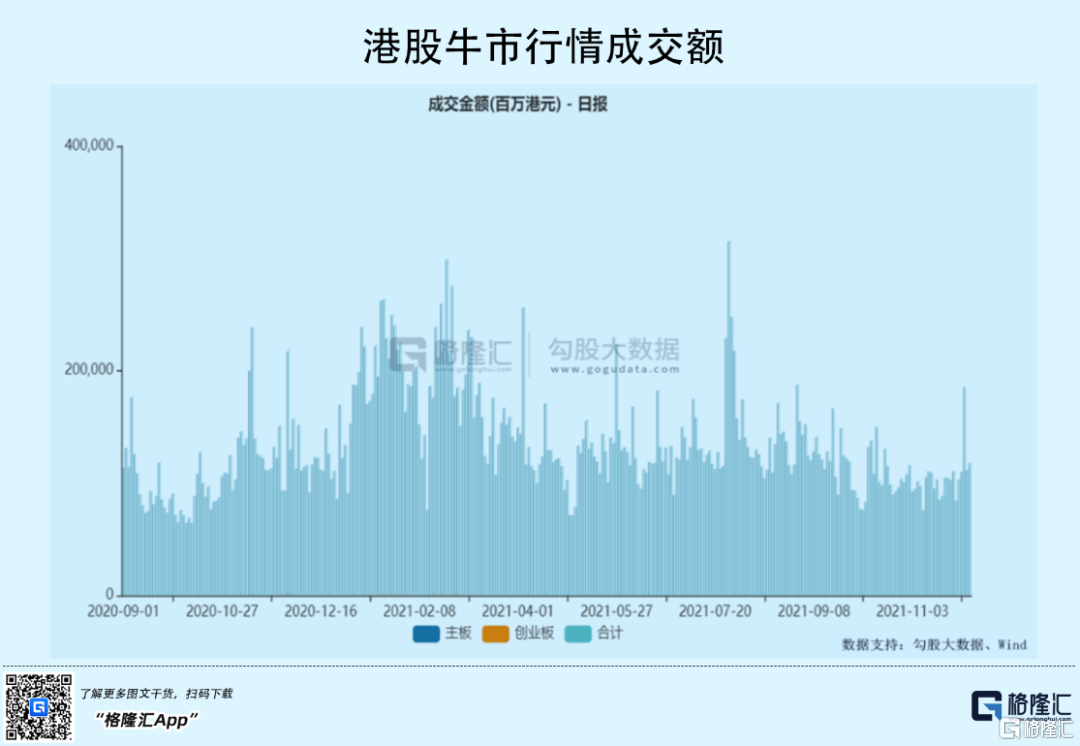 那时的增量资金,挺大一部分来源于海外,因为欧美央行疯狂QE,疯狂撒钱,资金泛滥溢出到港股市场。其次,在良好行情带动下,南下资金跨过香江,持续疯狂流入港股。从交易额也能明显看出来,那几个月港股每日成交额高达2000-3000亿,热闹非凡。自从崩盘之后,成交早已回归平常,区区千亿水平。