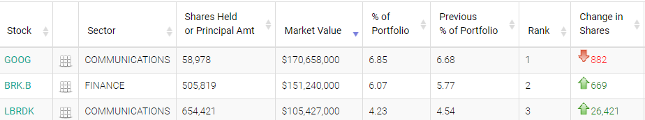 直至今日,伯克希尔依然是韦茨投资管理公司的重仓股。根据公司提交给美国SEC的文件,截至去年四季度末,伯克希尔占韦茨投资管理公司持仓的6.07%,为第二大重仓股,仅次于谷歌。