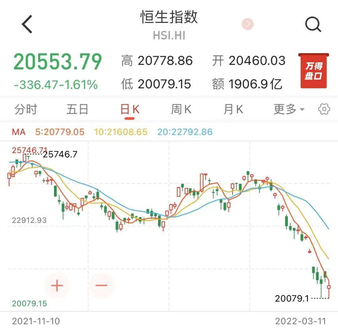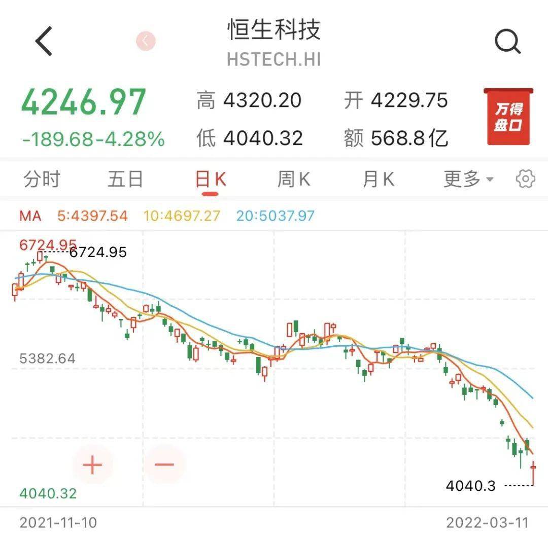 由于受到周四夜盘中概股暴跌影响, 周五港股恒生指数和恒生科技指数分别下跌1.61%和4.28%,恒生科技指数盘中一度跌近9%,创该指数成立以来最大单日跌幅。
