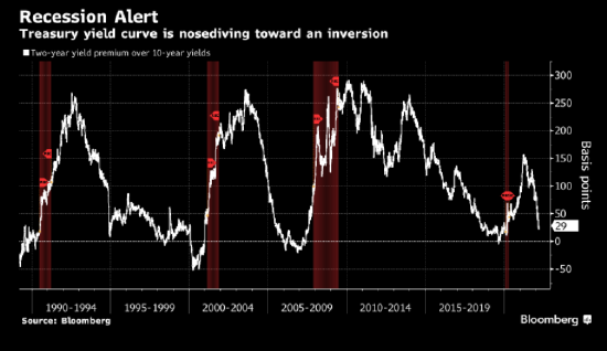 收益率曲线倒挂(即两年期收益率超过10年期收益率)被视为经济衰退的前兆,对于依赖短期借款的贷款方而已,收益率曲线倒挂会令他们的信贷拨备受到更大冲击。当美联储加息时,通常受影响更大的是短期收益率,曲线将平坦化。目前2年和10年期收益率差仅略高于25基点。