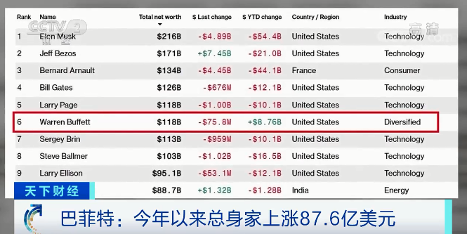 他本人的总身家自开年以来上涨了87.6亿美元(约合人民币555.29亿元),并且在本周一度重新跻身彭博亿万富翁指数排行榜的前五名。虽然到周五时,他又在榜单上滑落至第六位,但排在他前面的超级富豪们,今年年内身家全部跟随美股大盘走势而出现不小的缩水。