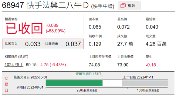 2、看错方向:快手法兴二八牛,上周五遭强制收回。