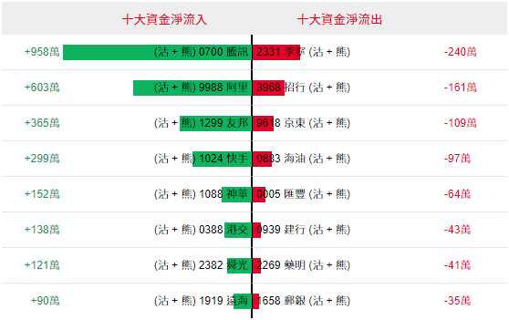 淡仓(认沽证及熊证)方面,上周五腾讯控股、阿里巴巴、友邦保险等相关淡仓分别约958万、603万及365万港元资金净流入;李宁、招行、京东等相关淡仓则见资金净流出套现。
