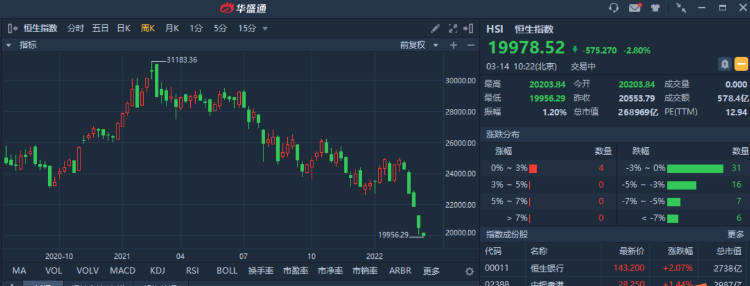 盘面上,可谓跟足了美国中概股的表现,开盘时,电动车跌幅基本达到双位数,互联网巨头继续深跌,加上疫情的影响,一种消费股也非常萎靡。