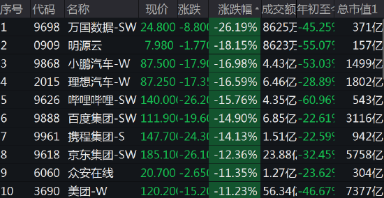 上周五中概股暴跌,恒生科技指数大跌7.58%,万国数据跌超26%,小鹏汽车、理想汽车跌超16%,百度集团跌15%,哔哩哔哩跌近16%,京东跌超12%,美团跌超11%,阿里跌近8%,腾讯跌4.5%。