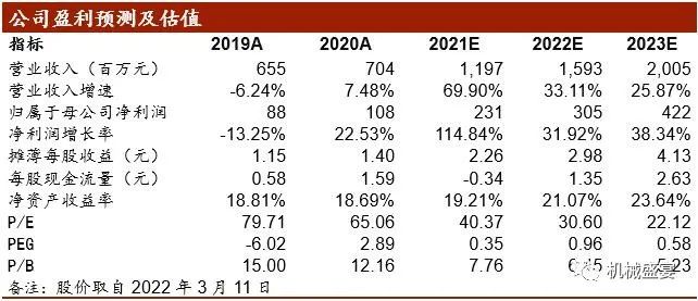 我们预计公司2021-2023年的营业收入分别为11.97、15.93、20.05亿元,归母净利润分别为2.31、3.05、4.22亿元,对应PE分别为40.37、30.60、22.12倍。首次覆盖,给予公司“增持”评级。
