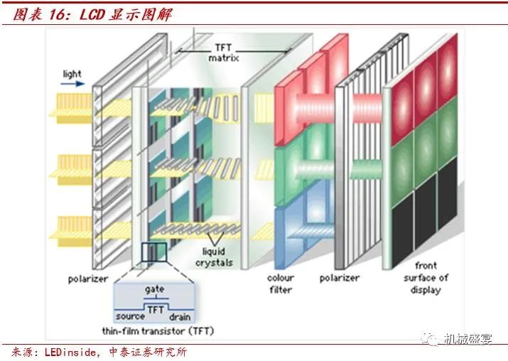 背光源是LCD显示的关键点。液晶屏发展至今,LCD显示技术的应用已超20余年,LCD显示的基本原理是液晶通电时导通,液晶分子排列变得有秩序,使左边的背光光线容易通过;不通电时排列混乱,阻止光线通过。背光透过液晶分子和彩色滤光片后,实现彩色图案化。因此背光源对LCD显示的对比度、色彩饱和度起关键作用。