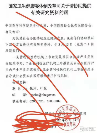 消息面上,网上流传着一份国家卫生健康委体制改革司关于请协助提供有关研究资料的函,里面大致是请各专家们提供三方面的研究资料。