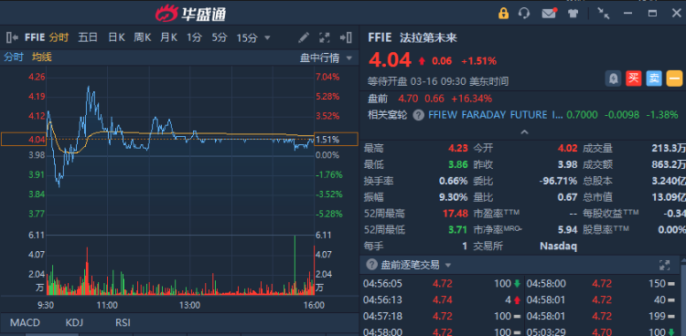 3月15日,法拉第未来宣布,公司在2022年3月9日收到纳斯达克上市资格部的通知,纳斯达克股票市场通知该公司,已接受法拉第未来重新遵守纳斯达克上市规则 5250(c)(1) 的计划,该规则允许法拉第未来普通股和认股权证继续在纳斯达克全球精选市场上市。截至北京时间17:05,法拉第未来盘前涨16.34%。