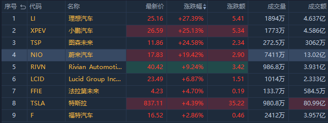 华盛资讯3月16日消息,美股盘中,新能源车概念股集体上涨,截至发稿,理想汽车(LI)涨超27%,小鹏汽车(XPEV)涨超25%,图森未来(TSP)涨超24%,蔚来汽车(NIO)涨超19%,Rivian(RIVN)涨超9%,Lucid(LCID)涨超6%,特斯拉(TSLA)、法拉第未来(FFIE)涨超4%,福特(F)涨近3%