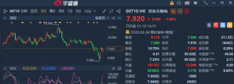 集团在2021年下半年,整体业务已从疫情中逐步恢复,在汽车显示屏业务更见大幅增长。但期内部份电子组件仍见短缺,也令到原料和相关成本增加。未来将继续跟客户建立紧密的关系,以提升市场占有率。同时会投放更多在欧洲市场,特别是新能源汽车显示屏。可于现价7.92元附近吸纳,中长线可见11.30元,跌穿6.90元止蚀。