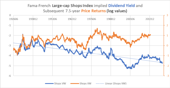 图N. 商店股票的股息收益率指向2030年之前较低回报。(Fama-French)