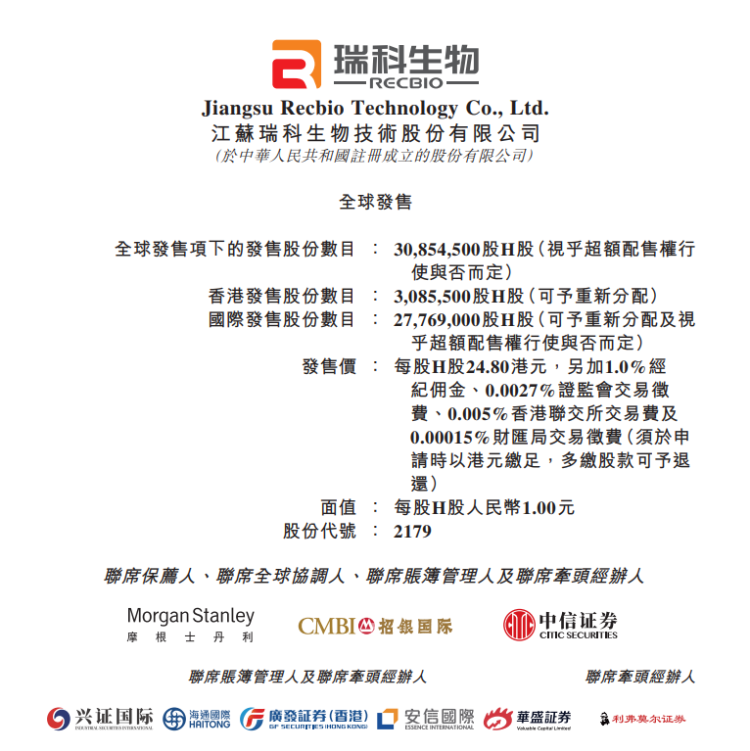 华盛资讯3月21日消息,瑞科生物于3月21日-3月24日进行招股,公司拟全球发售3085.45万股股份,招股价每股24.80港元。未计手续费,每手500股入场费12524.97元。前往新股中心,申购新股>>