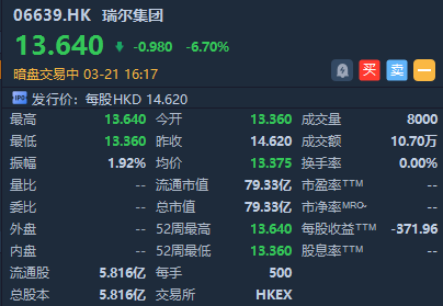 华盛资讯3月21日讯,口腔医疗机构瑞尔集团 $00816.HK 暗盘低开8.62%,现跌6.70%,最新总市值超77亿港元。该股预计将于明日(3.22)正式挂牌上市。