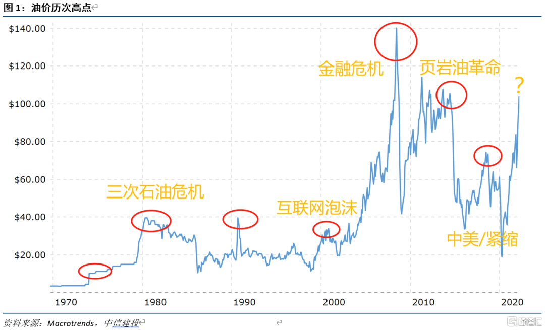 地缘政治冲击叠加强基本面,原油价格近期在高位剧烈波动。由于油价可能对通胀和经济产生负面影响,其趋势性回落对于行业配置、利率走势等均有指征意义。简要回顾历史上油价都是怎样从高点回落的,我们有如下结论: