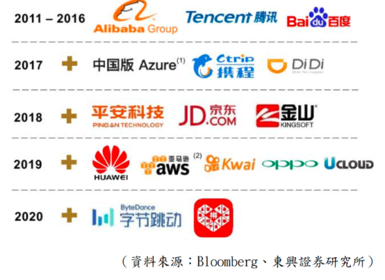 云计算是其中一个带动数据中心高增长的因素,中国现时虽然是全球第二大云计算市场,但市场渗透率仍不高,市场仍处高增长状态,接下来仍保持每年2、3成的增长。现时全球前五大云计企业为:Amazon、Microsoft、阿里巴巴、Google、腾讯,合共市占率超过8成,每年业务仍保持2成以上的高增长。