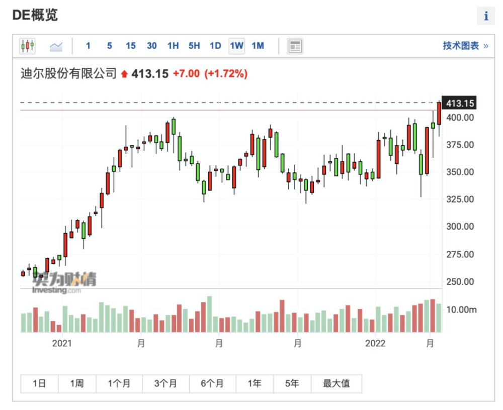 (DE周线图来自英为财情Investing.com)