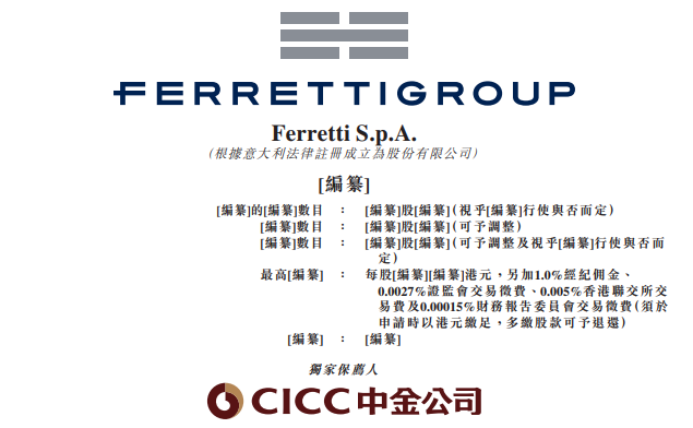 意大利顶级游艇生产商Ferretti S.p.A.(以下简称“法拉帝”),于3月22-25日开始招股,中金公司为其独家保荐人。