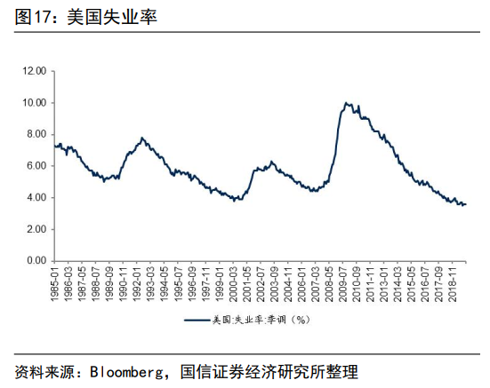 2017 年特朗普政府推出了美国史上最大规模的减税政策,美国经济迎来一波强劲增长。该阶段美国失业率持续下行降至近30年来的低位,PMI指数和消费者信心指数持续上行。