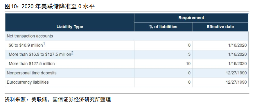 1980年,美国国会通过了《货币控制法》(MCA), 规定所有存款机构的法定准备金率是相同的,其中交易账户和非交易账户法定存款准备金率分别是12%和3%。1990年12月,美联储取消了非交易性账户的存款准备金要求。
