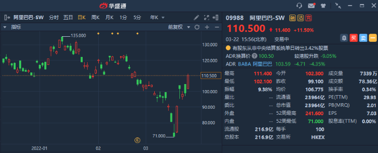 3月22日的公告显示,阿里集团将股份回购计划的规模由150亿美元扩大至250亿美元,回购将持续至2024年3月底,此举亦创下中概股回购规模纪录。250亿美元最高回购规模约合1956.33亿港元,相当于阿里市值的近9%。相关阅读:《数读港美 | 阿里豪掷250亿美元强势“护盘”,底部已确认?》