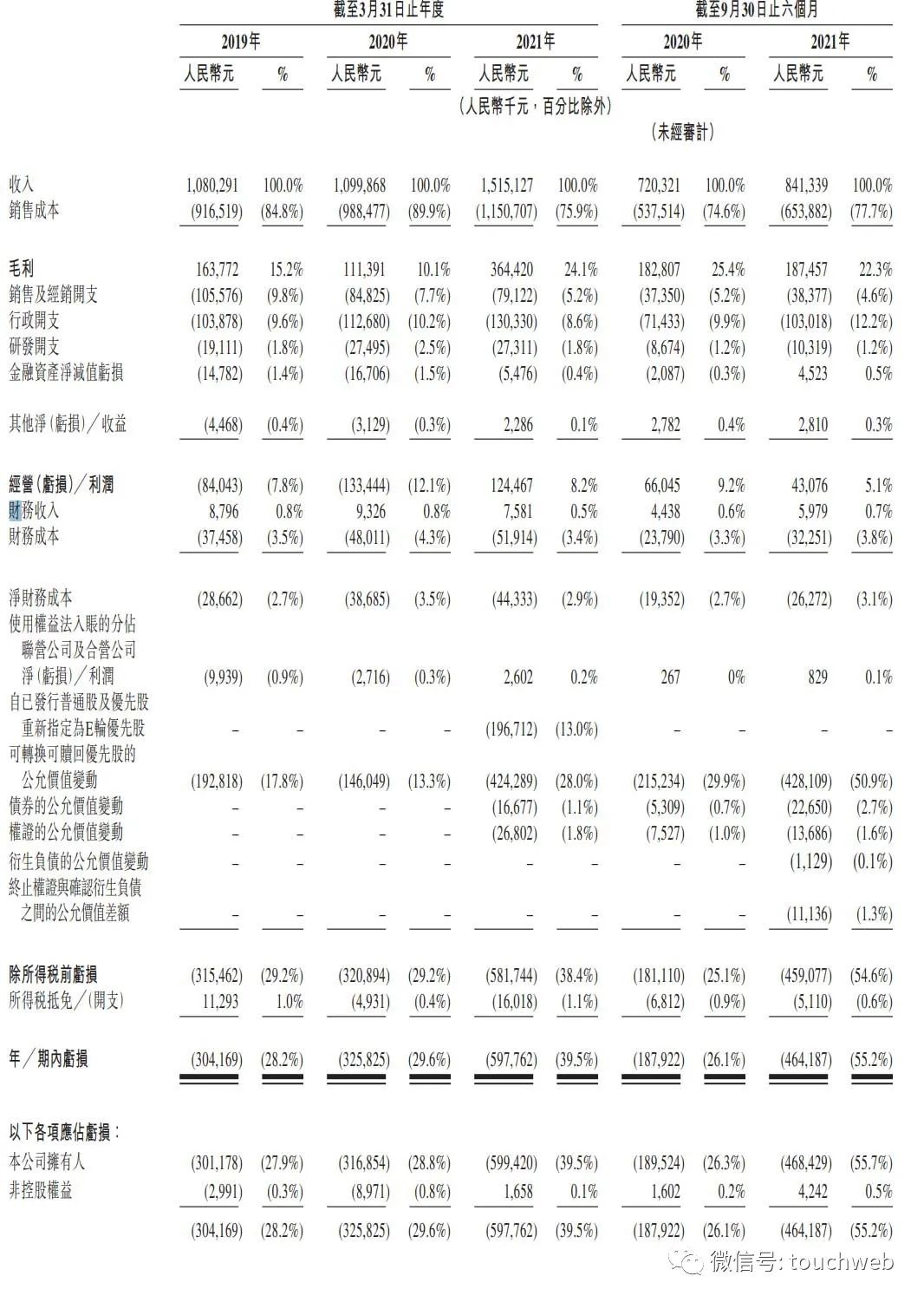 截至2021年3月31日,瑞尔集团年度亏损5.98亿元,年度利润率-39.5%;主要是计入4.24亿元的可转换可赎回优先股的公允值变化。