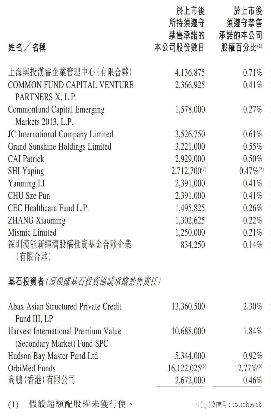 此次IPO后,Abax Asian Structured Private Credit Fund III, LPC持股为2.3%,Harvest International Premium Value(Secondary Market) Fund SPC持股为1.84%,Hudson Bay Master Fund Ltd持股为0.92%,OrbiMed Funds持股为2.77%,高鹏(香港)有限公司持股为0.46%。