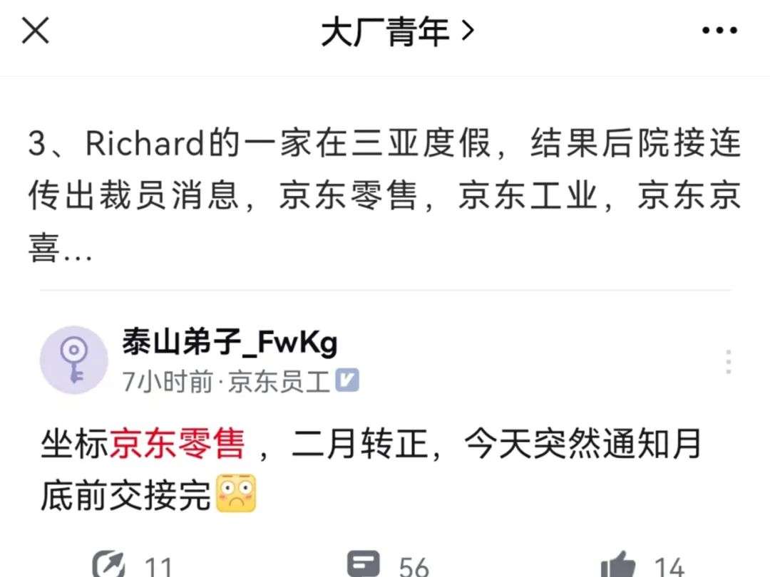 在零售V事业群拆散消息曝出之前,脉脉等各平台有多名员工爆料,京东3月份开始的一波人员优化同样也波及到了零售业务。