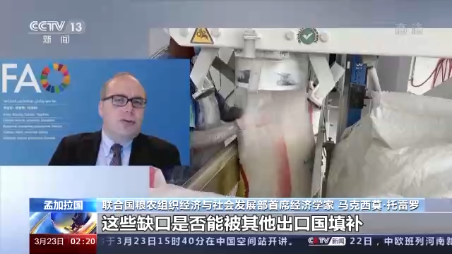 联合国粮农组织经济与社会发展部首席经济学家 马克西莫·托雷罗:现在的问题是这些缺口是否能被其他出口国填补,如果有别国替代粮食出口,我们就不会进入巨大危机。我认为全球粮食情况仍要看未来几周的情况,问题将如何解决。