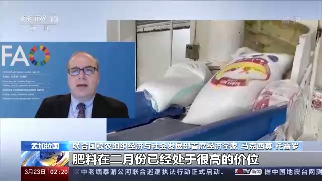 联合国粮农组织经济与社会发展部首席经济学家 马克西莫·托雷罗:我们面临的另一个主要问题,就是肥料价格问题,肥料在二月份已经处于很高的价位。如果来自俄罗斯的能源供应减少,或受到俄罗斯能源和化肥出口被制裁的影响,未来肥料价格可能急剧上涨,这些既是短期内的问题,同样从长期看也是一个问题,因为将影响到第二年的供应,给世界粮食供应真正造成问题。