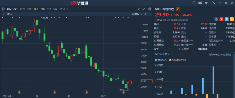 截至昨日美股收盘,B站股价30美元,市值115亿,较去年最高点跌去80%。