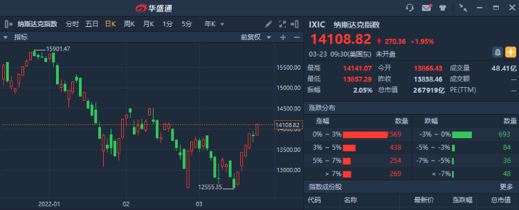 美股三大指数昨日悉数收涨,意味着美股在过去6个交易日已5次收涨,其中,纳指 $IXIC 已较3月14日收盘反弹超12%。
