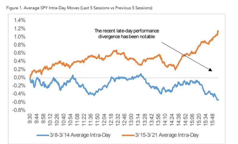 需要注意的是,为了跟踪基准指数走势,ETF经常会在尾盘阶段买卖股票,当市场走高时,这些基金就需要买入股票。