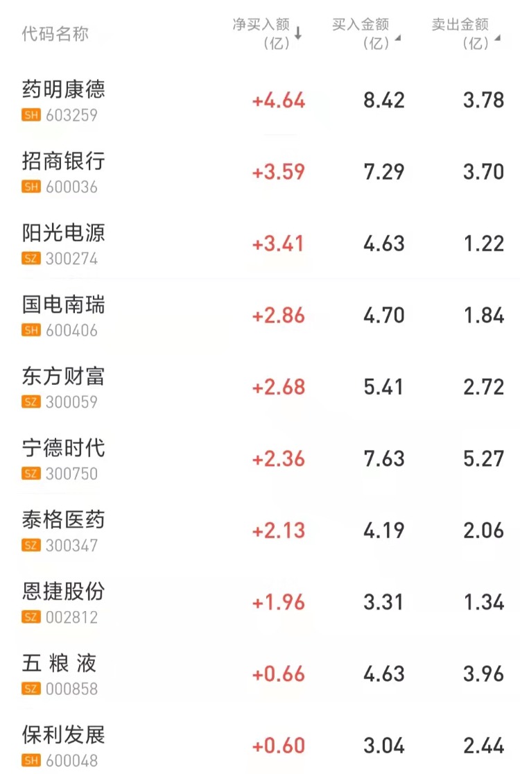 北上资金今日净买入药明康德 $603259.SH 4.64亿元,为今日买入之最;净买入招商银行 $600036.SH 3.59亿元。