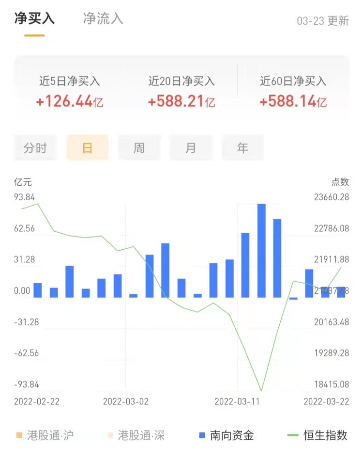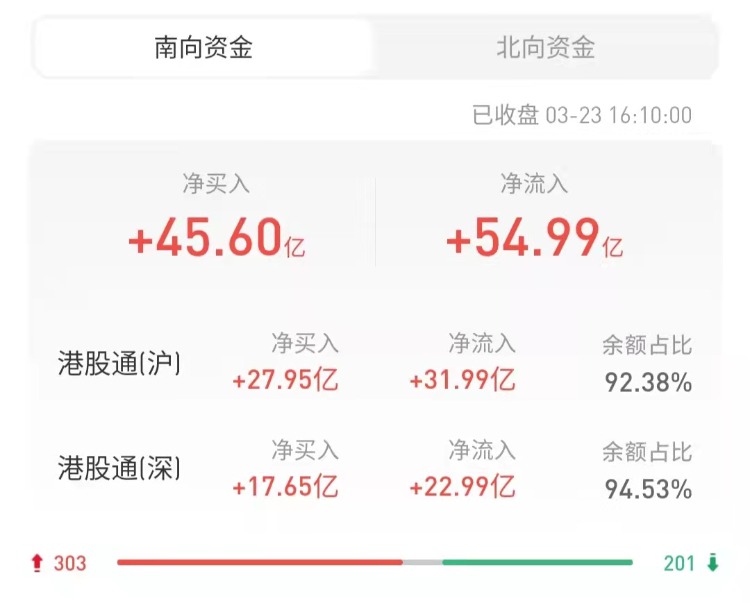 南下资金今日净买入港股45.6亿港元,其中港股通(沪)净买入27.95亿港元,港股通(深)净买入17.65亿港元。上一交易日净买入10.72亿港元。
