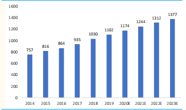 根据弗若斯特沙利文数据,全球CRO市场规模从2014年的 401亿美元增长到2018年的579亿美元,复合年增长率为 9.7%;2020年全球CRO行业规模达到719亿美元,预计2023年全球 CRO 市场规模达到952亿美元,复合年增长率为10.3%。