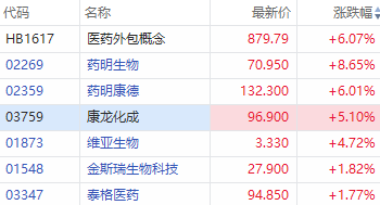 华盛资讯3月23日消息,CXO概念股持续回暖,目前涨幅居前。截至发稿,药明生物涨超8%,药明康德涨超6%,康龙化成涨超5%,维亚生物涨超4%。