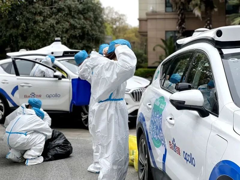 一大早,在嘉定区安亭镇博园路,10辆百度Apollo执行一项特殊任务:送菜。为保障村居民生活所需,安亭镇商务办协调大润发超市,紧急订购了1000多份蔬菜。但是全镇有77个村居,送货成了难题。就在工作人员担心运力不足时,百度apollo自动驾驶车及时出现。“别慌,我们来送!”公司派出10辆自动驾驶车、配备15名安全员志愿者,支援抗疫一线,减轻基层工作人员的负担。